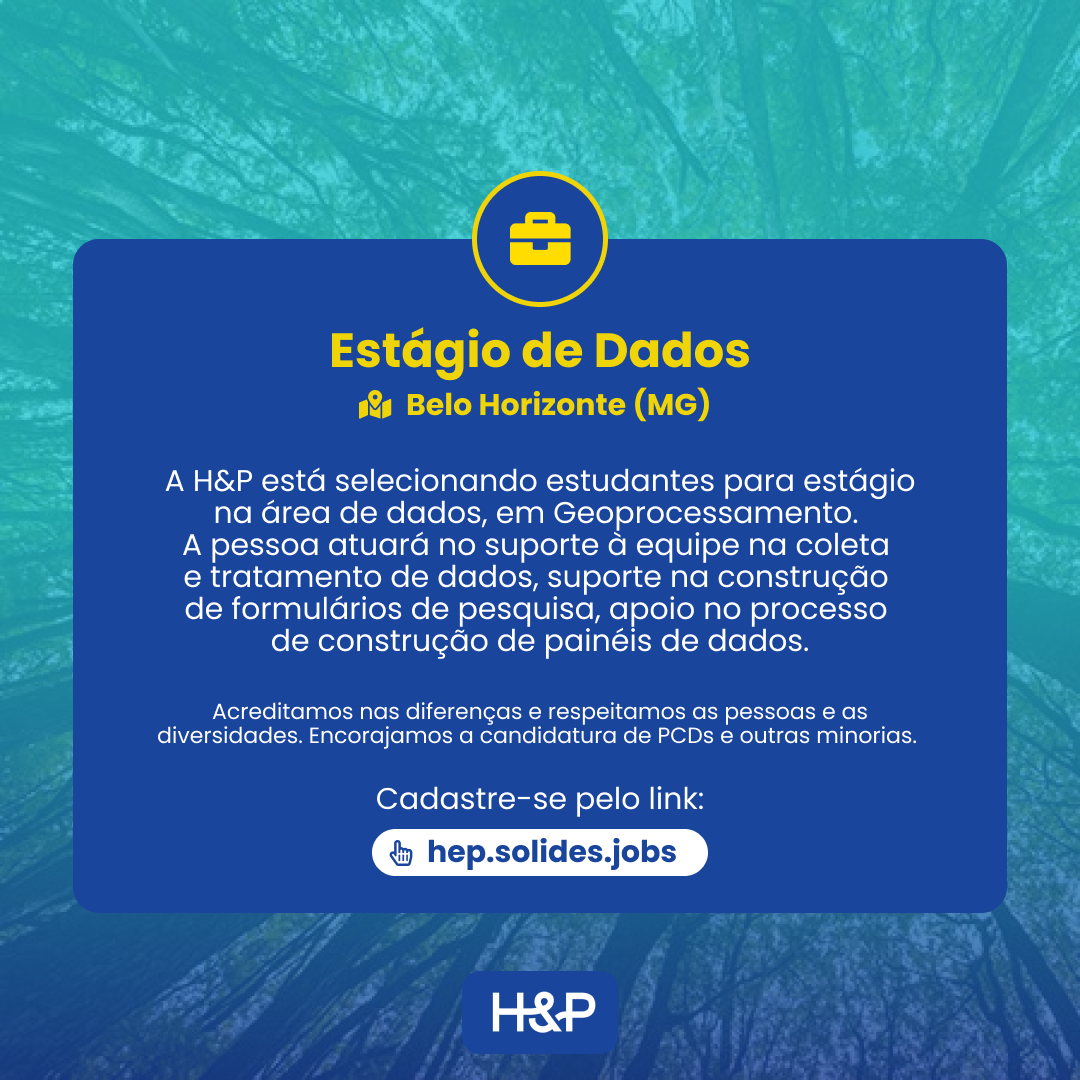 A H&P está selecionando estudantes para estágio na área de dados, em Geoprocessamento.